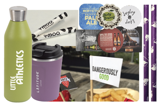 From straws, coasters, flag picks, reusable cups and cutlery we can customise all our products to make your brand stand out. Our talented graphic design team can create packaging that’s as unique as you are.