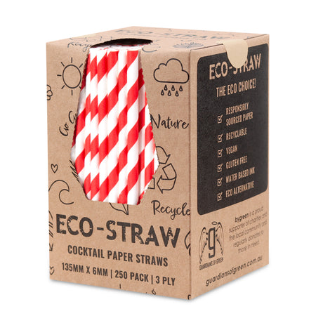 In stock$36.00 AUDUnit price /UnavailableECO STRAWS - COCKTAIL - PAPER STRAW - 3 PLY - RED STRIPE