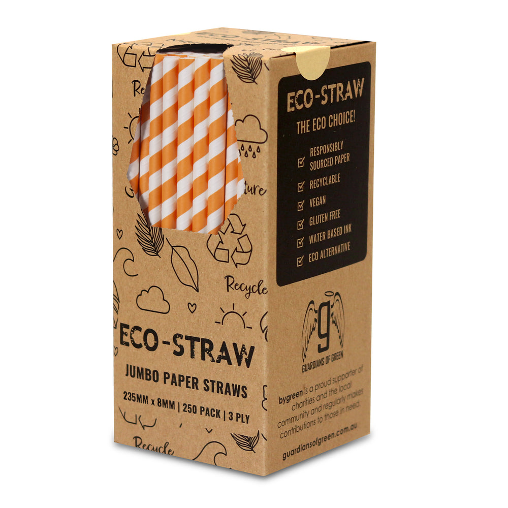 ECO STRAWS - JUMBO - PAPER STRAW - 3 PLY - ORANGE STRIPE