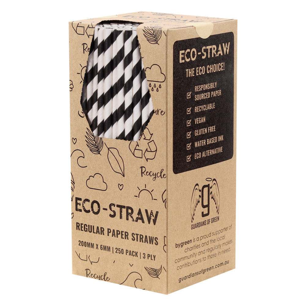 ECO STRAWS - REGULAR - PAPER STRAW - 3 PLY - BLACK STRIPE