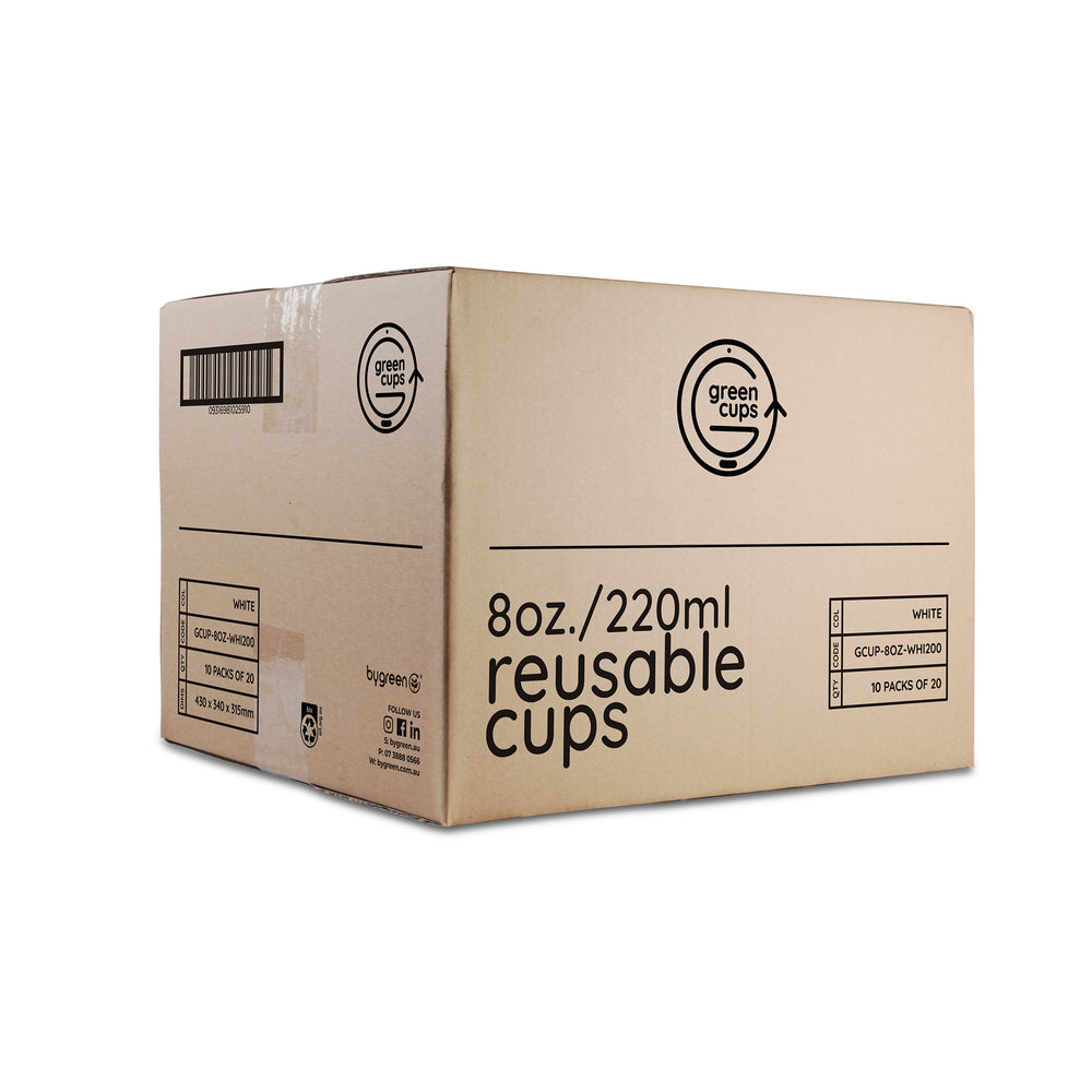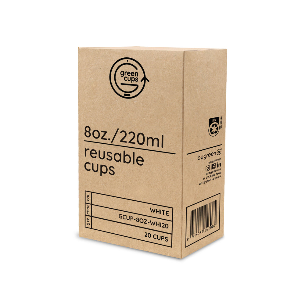 GREEN CUPS - REUSABLE COFFEE CUPS - 8OZ - WHITE