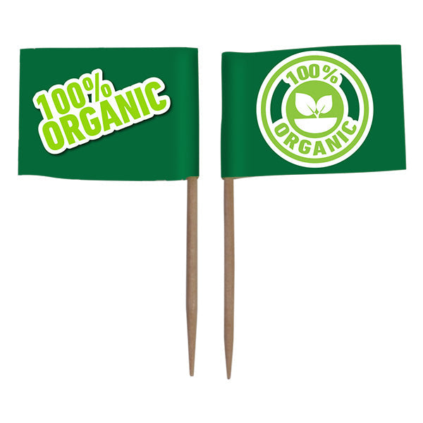 Highlight your commitment to sustainability with our One Tree "Organic" Steak Flags. Made from FSC®-certified bamboo and paper, these eco-friendly flags feature an "Organic" print, perfect for marking organic steaks, burgers, or any other dish with pride. The flags offer easy identification, helping to streamline kitchen operations while showcasing your menu's organic options. Biodegradable and responsibly sourced, these flags offer a sustainable choice for restaurants, caterers, and home chefs who prioritize both quality and environmental responsibility.