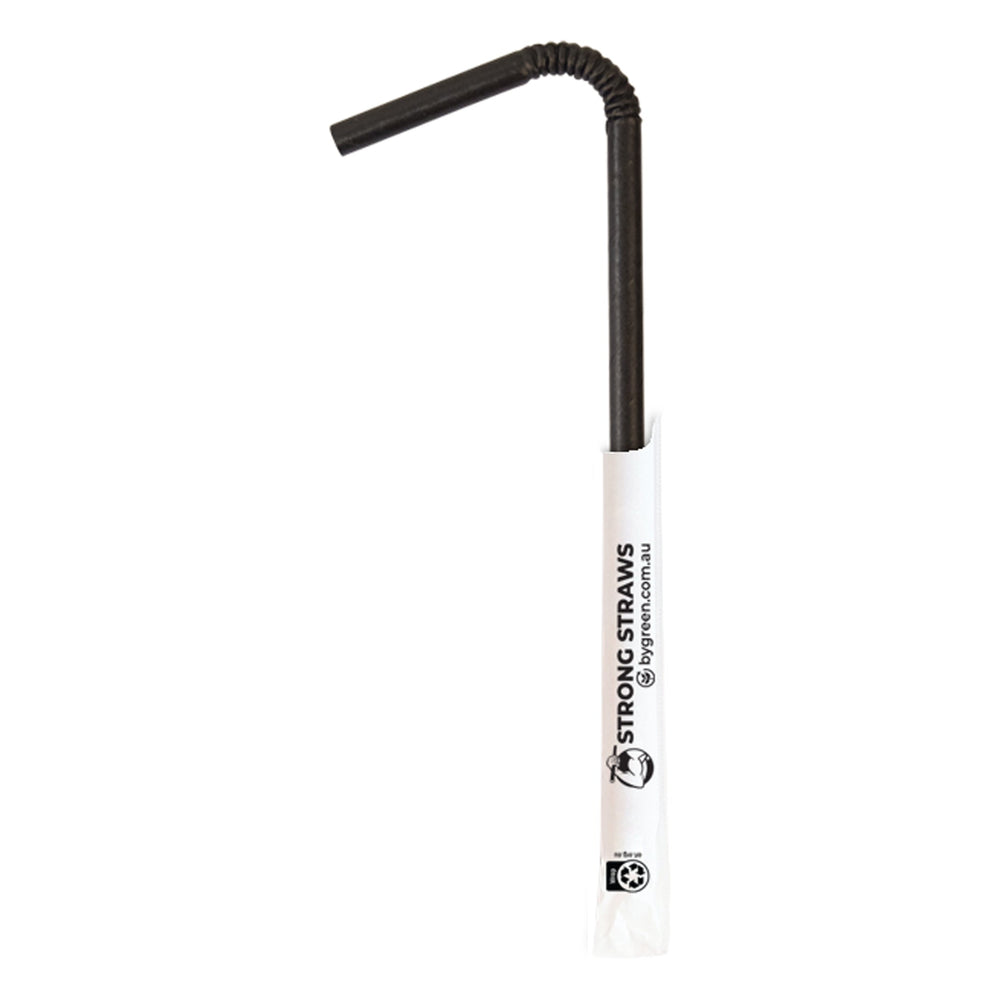 STRONG STRAWS - 4 PLY FLEXI PAPER STRAW WRAPPED - BLACK