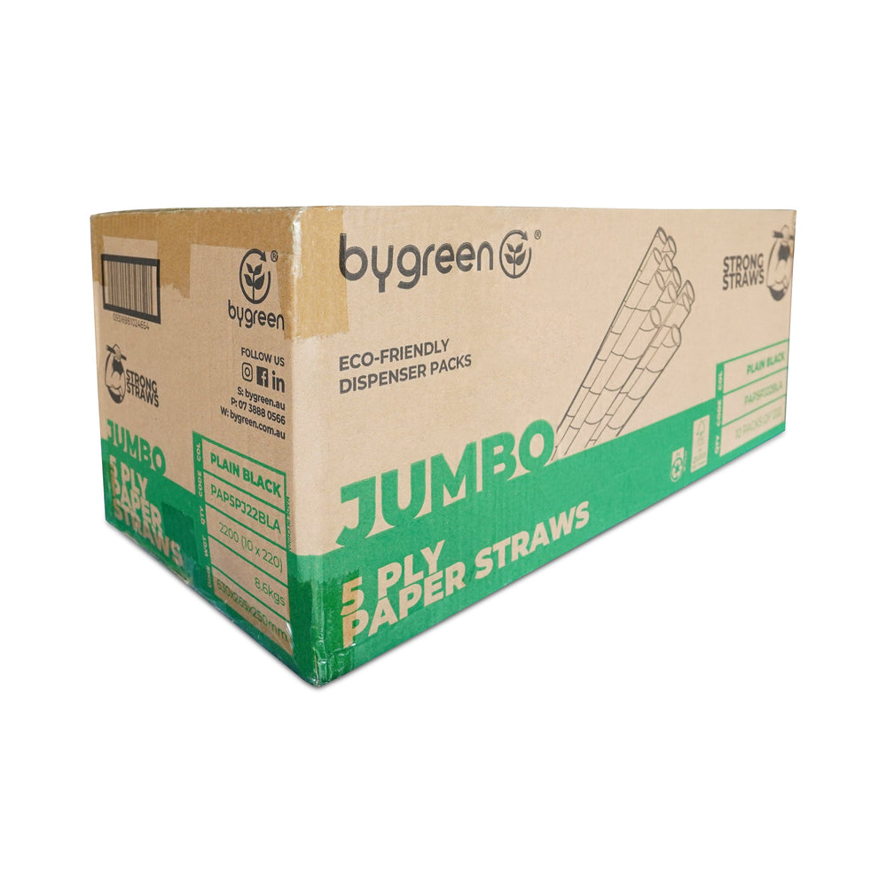 Our Jumbo Black Strong Straws are designed for the serious drinker. Measuring 8.5mm in diameter and 235mm long, these 5-ply straws provide an extra robust sipping experience, perfect for everything from smoothies to iced coffees.