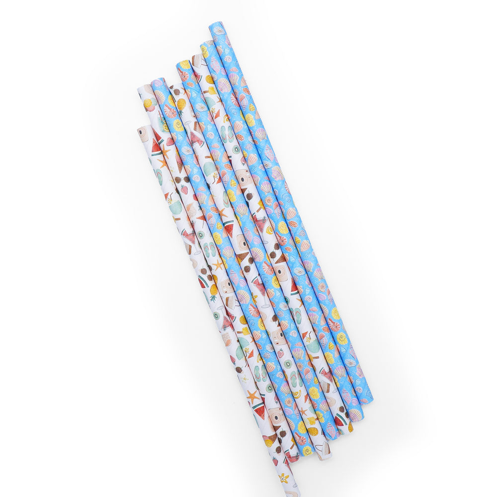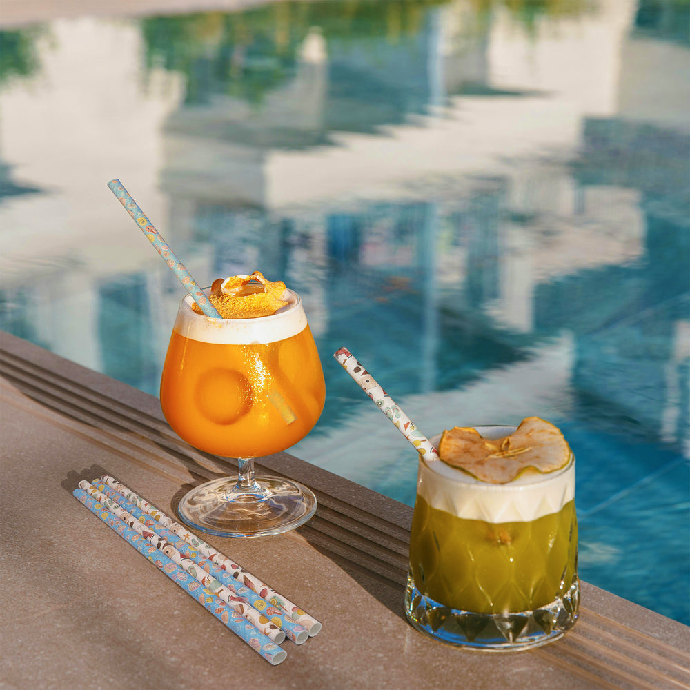 Sip the summer vibes with the Bygreen x Creative Cafe Company Jumbo Straws! At 8.5mm wide and 235mm long, these 5-ply straws bring both strength and style to your drinks. This exclusive collab features two vibrant designs – a cool blue straw covered in seashells and a fun pink straw bursting with summer icons like thongs, starfish, ice creams, sunglasses, and cocktails. Perfect for thick shakes, smoothies, and beachy beverages, these straws add a splash of fun to every sip!