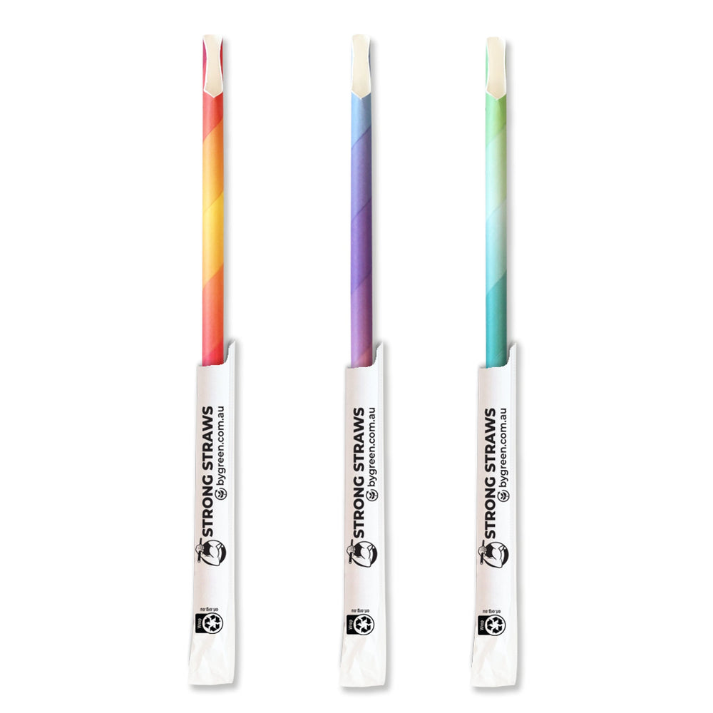 STRONG STRAWS - 5 PLY SPOON PAPER STRAW WRAPPED - MIXED COLOURS
