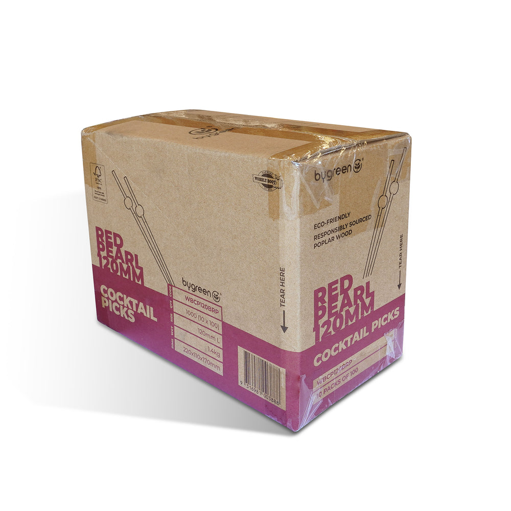 Make a bold statement with our Red Pearl wooden cocktail picks by Wobbly Boot Barware. These elegant picks add a striking touch to your cocktails or appetisers, ideal for upscale events or everyday entertaining. Available in cartons of 1,000 picks.