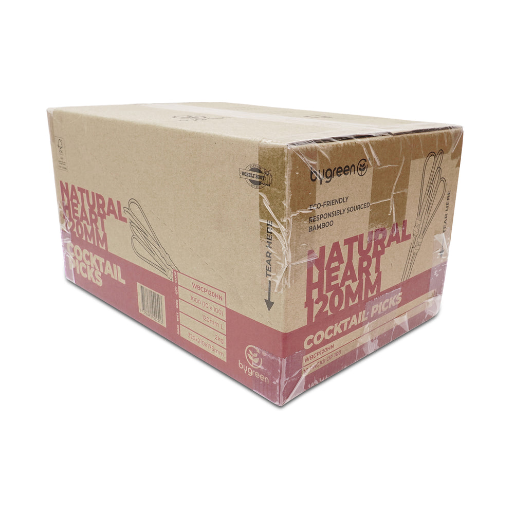 Add a touch of warmth to your gatherings with our Natural heart bamboo cocktail picks by Wobbly Boot Barware. The rustic design beautifully complements any theme, making them ideal for casual get-togethers or elegant affairs. Available in cartons of 10 packs of 100, totalling 1,000 picks.