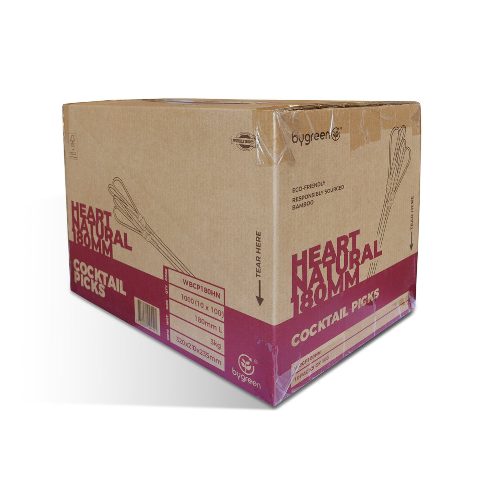 Serve with style using our 180mm Natural Heart Bamboo Cocktail Picks by Wobbly Boot Barware. The smooth, natural bamboo finish and charming heart-shaped top bring warmth and elegance to cocktails, appetisers, and desserts. Supplied in cartons of 1,000 picks, they’re perfect for caterers, bars, and event professionals.